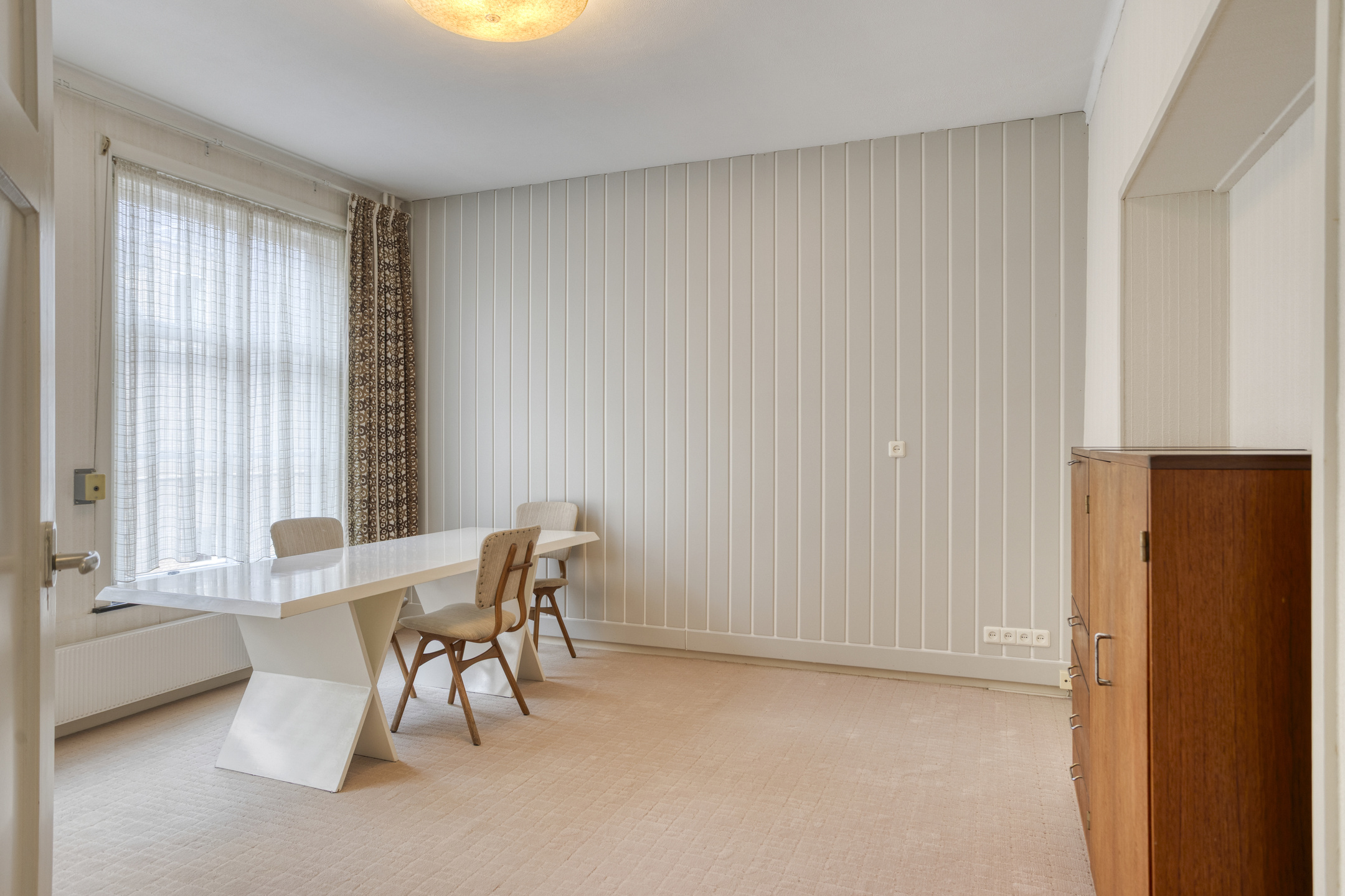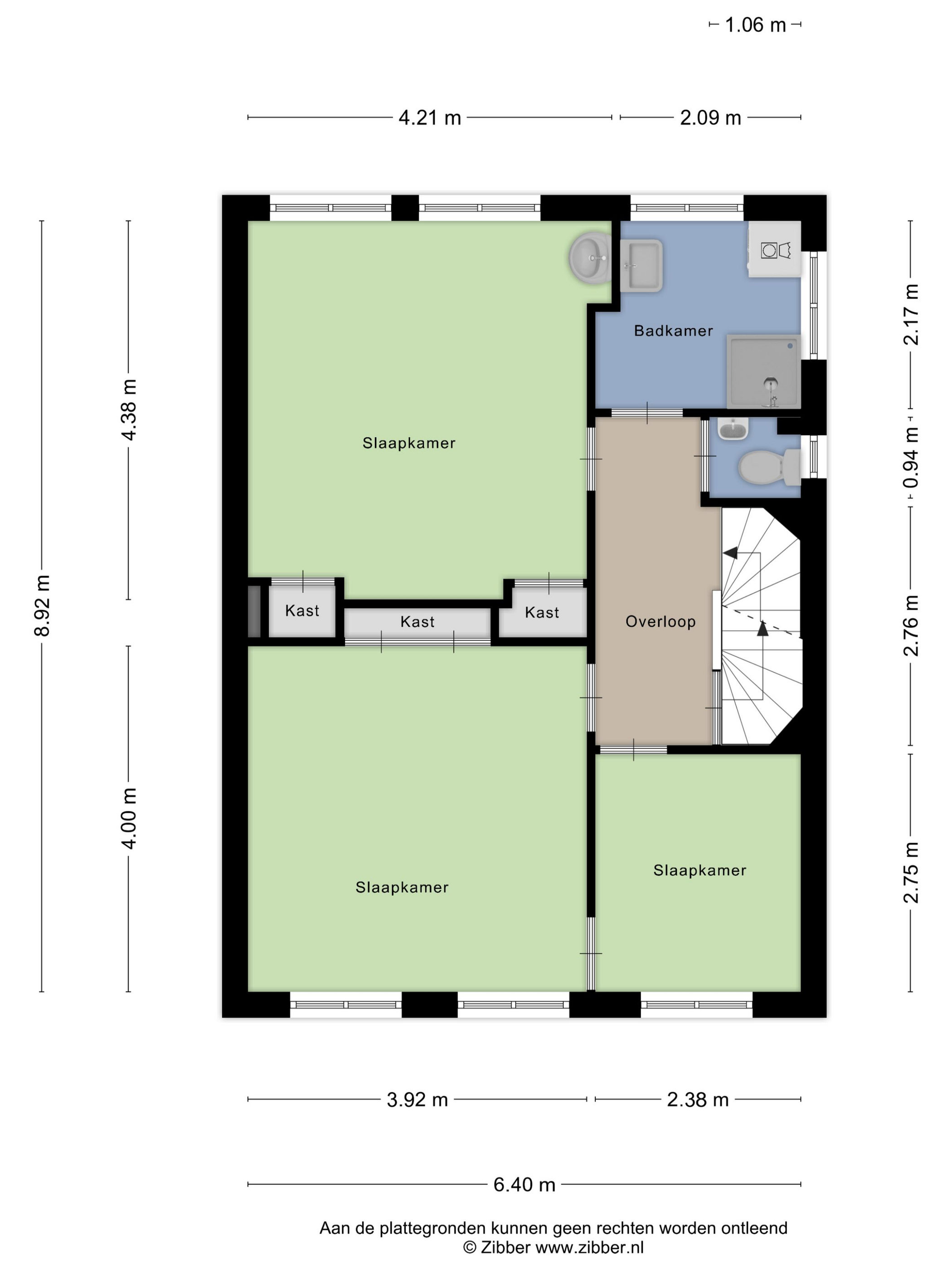Op de eerste verdieping is een mooie overloop aanwezig en 2 achter elkaar gelegen zeer ruime slaapkamers van (4.20x3.92) met vaste kasten en 1 met een eigen wastafel. De 3e slaapkamer aan de voorzijde is (2.71x2.38) groot en staat in verbinding met de grote slaapkamer aan de voorzijde waarmee het idee is geboren van een walk-in closet. Aparte w.c.-ruimte.